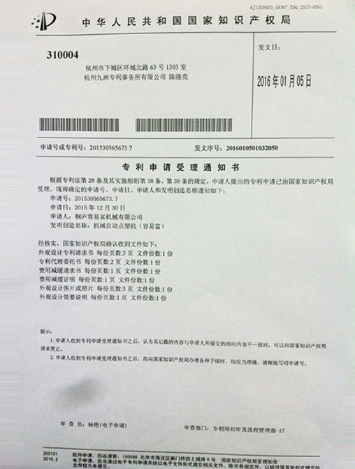 已經(jīng)獲得十多項發(fā)明專利和二十多項實用新型和外觀專利,所有產(chǎn)品都是經(jīng)過高精密的設(shè)計和制造,以確保機器可以平穩(wěn)的運行。